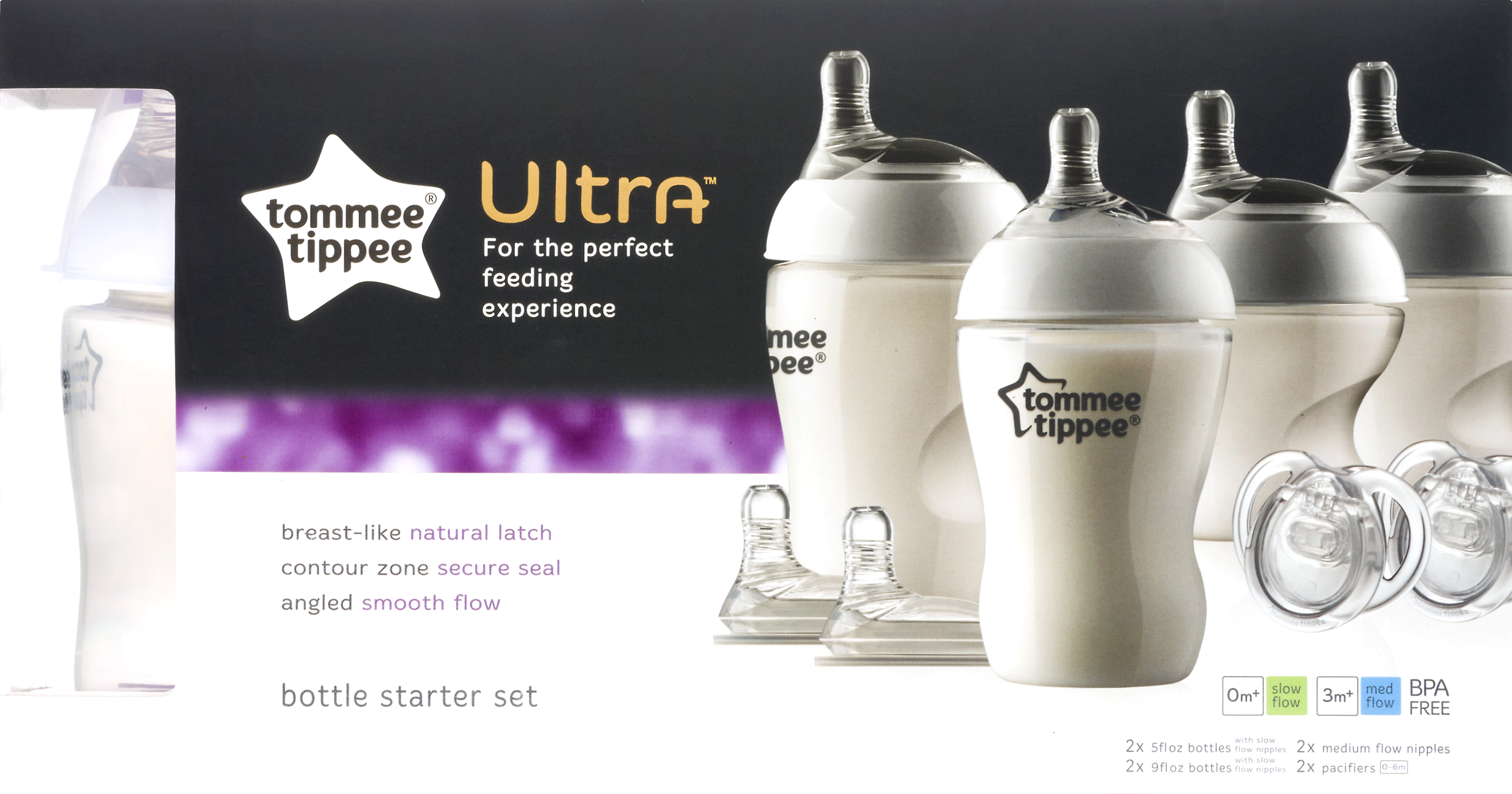يتكون من: 2 × زجاجات رضاعة 150 مل فائقة مع حلمة ألترا أوم + بطيئة ، 2 × زجاجات رضاعة 260 مل ، مع حلمة.